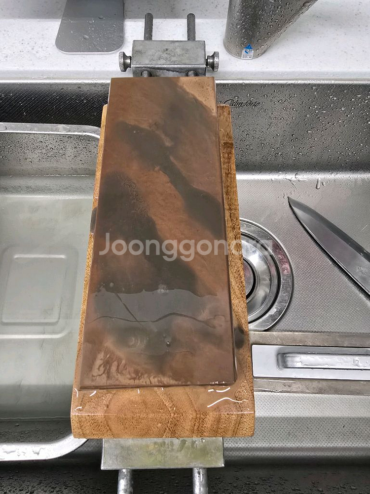 오히라야마 아카핀 초대물 극미품 크기 : 21.3cm x 8.2cm 두께 : 5cm 경도 : 중경질 입도 : 7000방 ~ 10000방 어두운 흐림계. 면잡이 마무리단계에 쓰기 좋은숫돌입니다. 즙 어마어마하게 나오고 돌자체가 걸리는거하나없이 매끈해 활주감이 정말좋습니다. 원목다이및 카슈작업(방수) 완벽하게되있어서 바로 사용가능합니다.