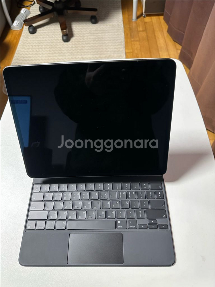 - 상품명 : 아이패드 프로 12.9 (5세대) 256기가 + 애플정품 매직키보드 (펜슬 無), (상자, 충전기 有) - 2023년 말 회사 선물로 받음 - 거의 사용 안함, 유튜브 좀 보다가 그때 그때 소프트웨어 업데이트만 수행했습니다. - 하자 없고, 기스 없습니다 (애플 정품 매직키보드 초기부터 장착) - 집 밖에서 사용 안하고 떨어뜨리거나 부딪힌 적 없어 외관상 사용감 없습니다 -판매시 태블릿 초기화 예정