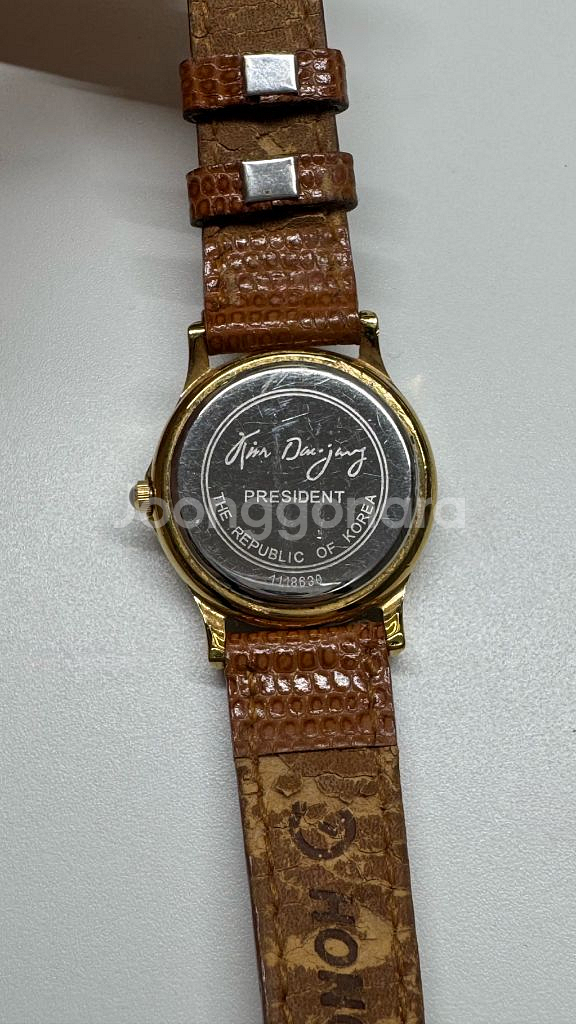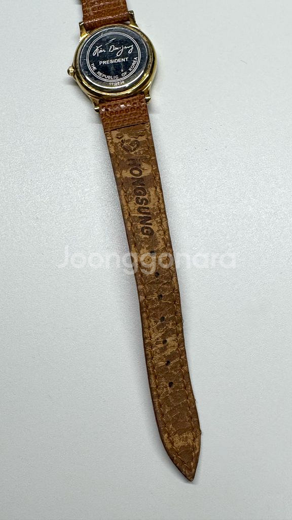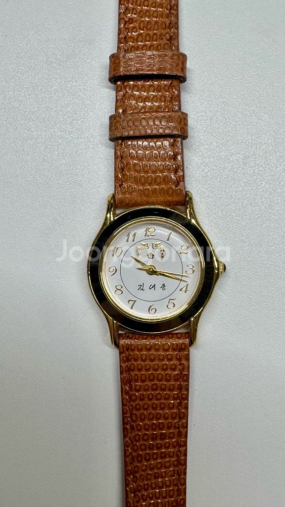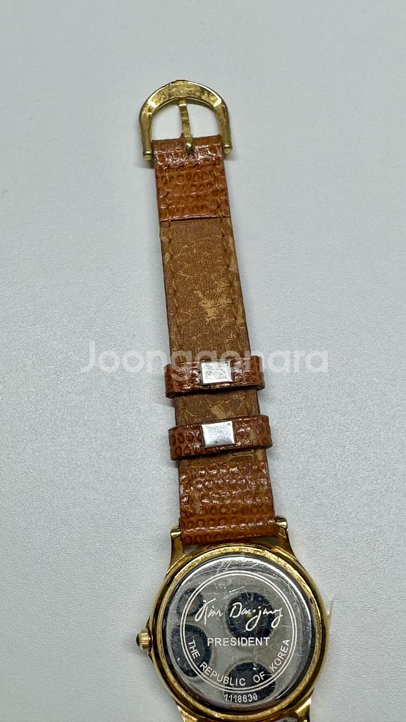 김대중 대통령의 2000년 노벨평화상 수상을 기념하여 제작된 공식 한정판 기념 시계입니다. 당시 소수만 배포되어 현재는 보기 힘든 희귀한 수집품으로, 역사적 가치가 높은 아이템입니다. • 상태: 작동 이상 없음 / 외관 깨끗 / 생활기스 거의 없음 / 시계줄 내부 벗겨짐 (메탈이나 다른 가죽줄로 교체해도 멋있습니다) • 배터리: 최근 교체 완료 (정상 작동) • 구성: 시계 본체 • 각인: ‘김대중 대통령 노벨평화상 수상기념’ 문구 확인 가능 • 제작년도: 2000년 특징: • 대한민국 현대사와 민주주의의 상징적인 의미를 지닌 기념품 • 공식 배포용으로 일반 판매가 없었던 모델 • 수집가, 역사기념품 애호가, 전시용으로도 가치 높음