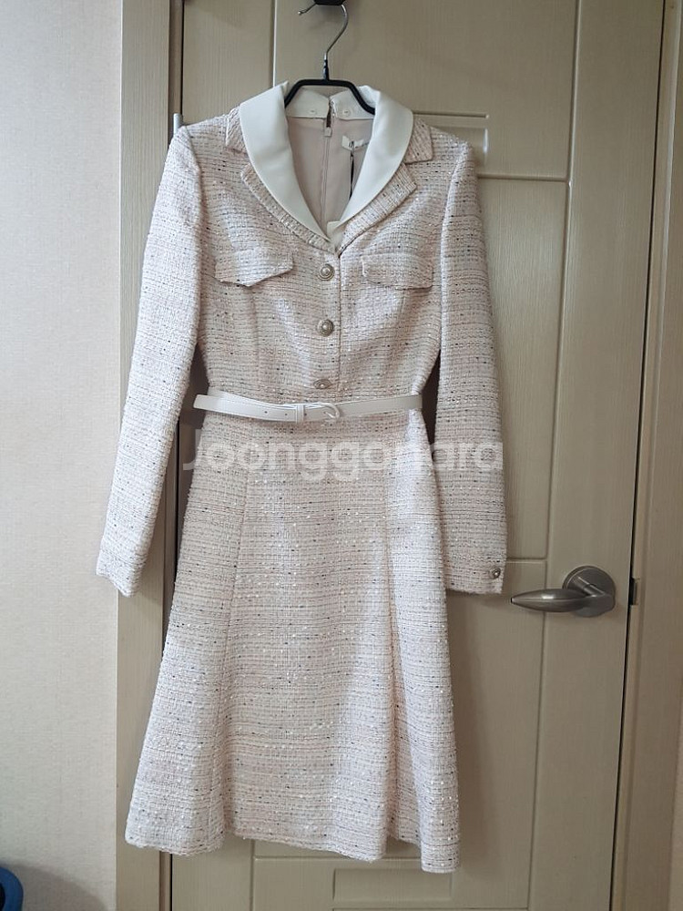 44~55 (매장구매) 가슴반품 약 41~2 총장 약 100 실측사이즈 확인후 구매하세요 신축성은 약간 있어요 시착만한 상품 입니다 저는 구매후 살이쪄서 못입었어요 단아하고 고급스러운 트위드 원피스 입니다 목 부분 화이트 카라는 탈부착 가능한것 같아요 벨트는 착용해도 예쁘고 안해도 예쁘네요 봄엔 단독으로 가을엔 자켓에 겨울엔 코트속에 입으시면 될것 같아요 데이트룩 연말룩 데이트룩 하객룩 다 가능한 아이입니다 예민하신 분은 패스해주세요 환불 반품 안됩니다 이것저것 따지시는분은 백화점으로 고고하십쇼 네고문의 답장 안합니다