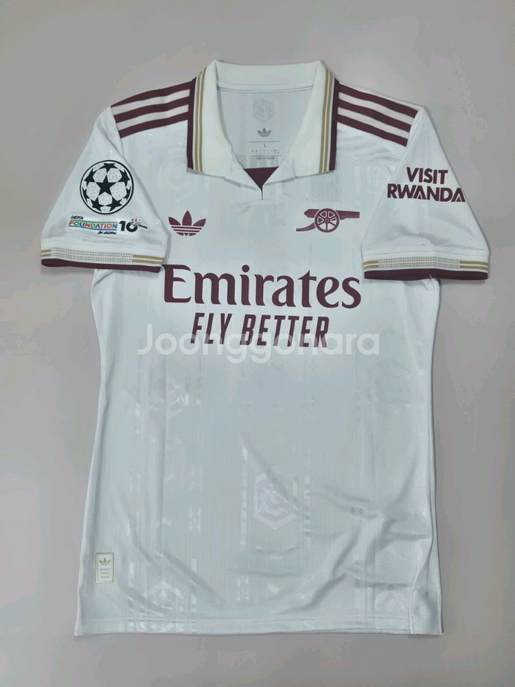 25-26시즌 아스날 써드킷 챔피언스 리그패치 41번 데클란 라이스 유니폼!(oem) ☆☆ 25-26 새시즌 아스날 써드킷으로 아스날과 잉글랜드의 핵심 MF!! 데클란 라이스 유니폼입니다. 맨유와의 개막전에 처음 착용했던 유니폼으로 톡특하고 빈티지한 디자인으로 평이 정말 좋은 유니폼입니다!!! ▶ 오른쪽 어깨 챔스 스타볼 패치 & 10주년 파운데이션 패치 왼쪽 어깨 비지트 르완다 스폰서 패치 - 챔스폰트로 리그 폰트보다 훨씬 더 이뻐요!! 택채 새상품!! ☆어센틱 버전(선수용 재질,슬림핏)☆ L사이즈 대략 총기장 74cm, 가슴둘레 100cm 국내 성인 남성 100사이즈정도됩니다. **OEM 새제품이니 참고후 편하게 착용하실분들 구매바랍니다. 택배거래만 합니다(편의점 택배안함) / 택비포함 5.0 구매가능 문의 하실 필요없이, 결제가능한 제품들은 다 재고있으니, 바로 안전결제나 문의후 계좌이체 해주시면 됩니다. 택배는 결제 다음날(공휴일 제외) 바로 배송시작됩니다.