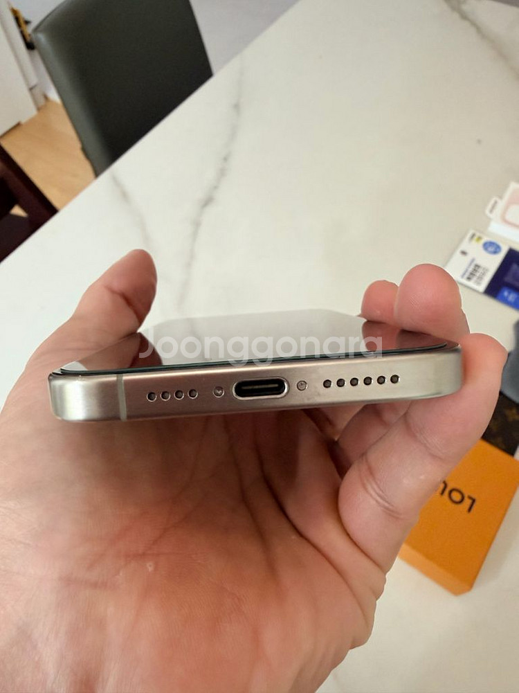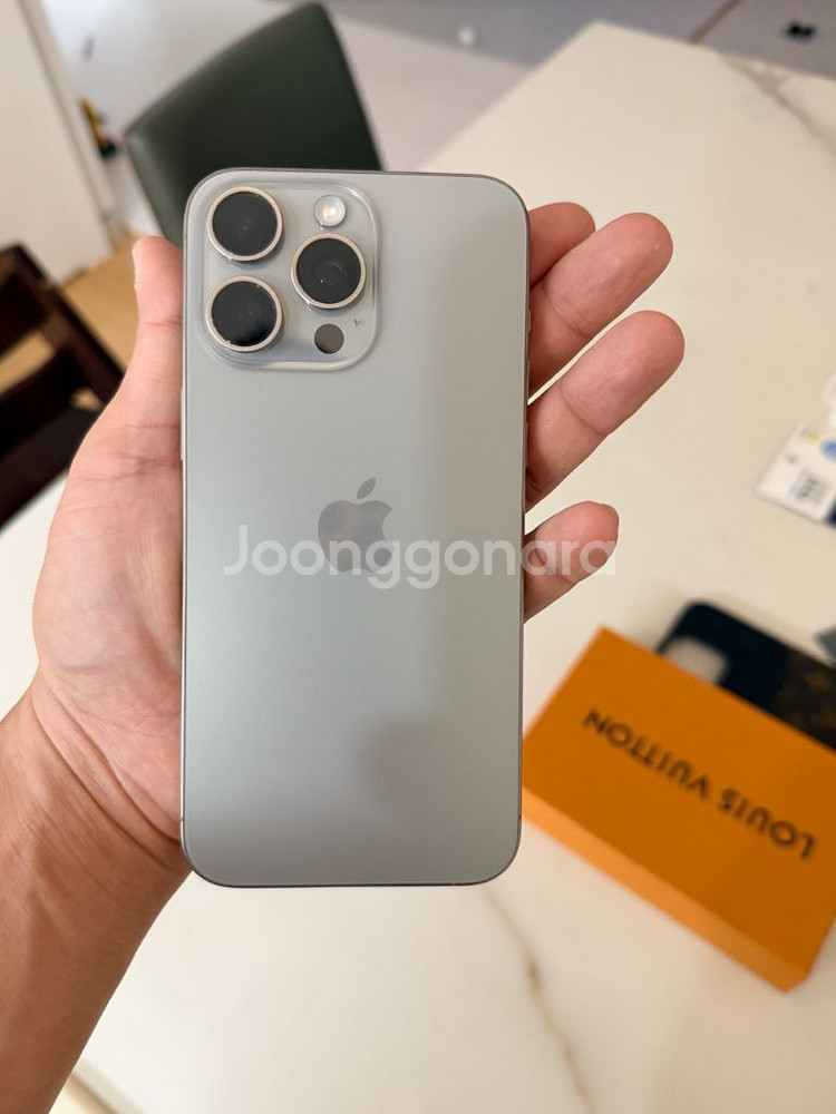 아이폰 15프로맥스 내추럴 티타늄 256gb 판매합니다. 액정, 바디에 모두 기스 없는 상태 입니다. 쿠팡에서 구입하여 사용하였으며 정상적으로 초기화 하였습니다. 배터리 88%이며 구성품은 기기 단품 + 애플 정품 실리콘 케이스 + 보호필름 이며 원하시면 사용감 많은 루이비통 정품 케이스도 드립니다. 원하지 않으시면 그냥 버리려고합니다. 박스와 케이블은 포함되지 않습니다. 판매가격은 97만원이며, 택배 거래시에는 98만원 받습니다. 반드시 저렇게 모두 함께만 판매하며, 뭐 빼고 얼마에 되나요 이런 문자는 답변하지 않습니다. 구매한다는 내용 외에는 어떤 문자도 답하지 않습니다. 직거래는 파주에서 가능합니다. ***-****-**** 문자주세요.상품 정보 내 개인정보는 자동 보호됩니다. 안심결제로 안전하게 거래하세요.