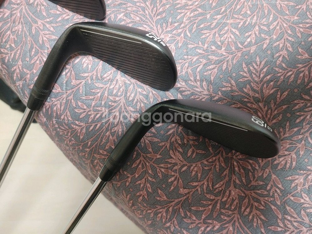 PXG 슈가대디 2 웨지 3개 세트 (52, 56, 60도) - 구성: 52도(C-GRIND) PROJECT X 6.5 56도(BP-GRIND) ELEVATE 95 S 60도(BP-GRIND) ELEVATE 95 S 그립은 표준 그립 60도가 상태가 가장 좋으며 52도 56도 순입니다. 블랙 색상으로 사용감 좀 있으나 성능에 문제는 없습니다.