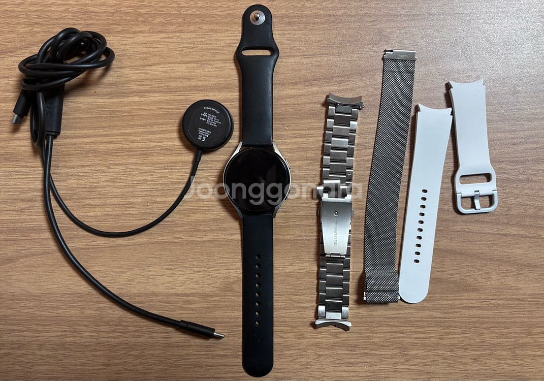 갤럭시워치5 44mm 판매합니다 대략 2년전에 구매했습니다 애초에 사용 기간도 한달정도이고, 그마저도 보호유리 끼고 사용해서 앞 뒤판 기스 거의 없습니다 스포츠 스트랩2개 메탈스트랩2개도 및 충전케이블까지 그냥 같이 드립니다.
