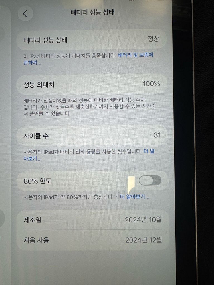 아이패드 미니 7세대 퍼플 색상 판매합니다 256g 셀룰러 풀셋입니다 와이프가 사용안한다고해서 판매합니다 생활기스는 있을지 모르지만 큰 기스는 없습니다 - 배터리 성능 100%, 사이클 31회로 거의 새 제품과 같습니다 사용중이라 몇회정도 올라갈수있습니다 - AppleCare+는 2027년 1월 5일까지 유효합니다 - 얇고 가벼운 디자인으로 휴대성이 뛰어납니다 - 미사용 정품 충전 선과 미사용 충전기 포함입니다 액정보호필름 부착되어있습니다 스마트폴리오 카키색 박스포함 같이 드립니다 내고 문자 답안드립니다 안팔리면 알아서 가격 내릴께요 내고문의 주지마세요 직거래는 한류유치원 큰길 맞은편 힐스테이트킨텍스레이크뷰아파트 근처에서 하겠습니다