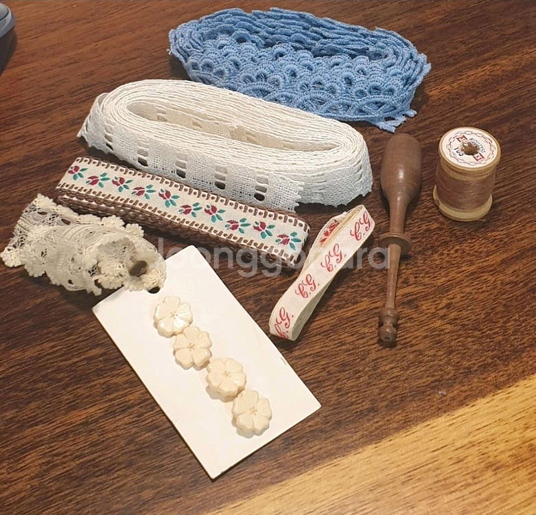 ========================= 소장중인 빈티지 단추.프랑스레이스등은 세월감이 있는 빈티지제품들은 색바램 또는 올풀림 있기도합니다 예민하지 않으신분들 구매해주세요 구매가격보다 내려서 판매합니다 부자재들은 미사용들이나 b급하자.구김.주름.변색등으로 착한가격에 판매합니다 ================================ 빈티지부자재 1번 일괄.....5만원 빈티지 프랑스 레이스 2개 빈티지 보빈 브라운 실패 빈티지플라스틱 꽃단추 이니셜라벨 빈티지면테이프 중고나라 택배로 보낼께요 (롯데택배) 거래후 단순변심으로 환불교환되지않으니 신중히거래해주세요