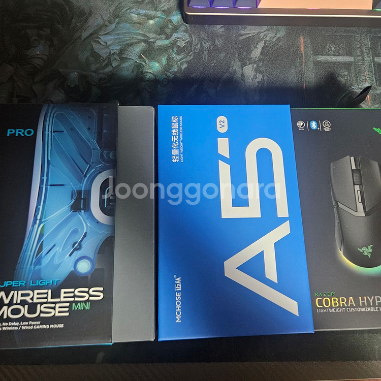 바이퍼 미니 쉘 로 유명한 무선 버전 제품 입니다. 구매하고 3시간 사용 후 재포장 후 방치만 하고 있다가 판매 합니다. 그립테이프도 따로 구매해 붙혀놨습니다. 상품 하자 없으며, 저는 개인적으로 클릭압도 맘에 들었고 클릭감도 구분감 확실해서 좋았습니다.~ 원래 쓰던 마우스가 그립이 편해 판매 합니다.!