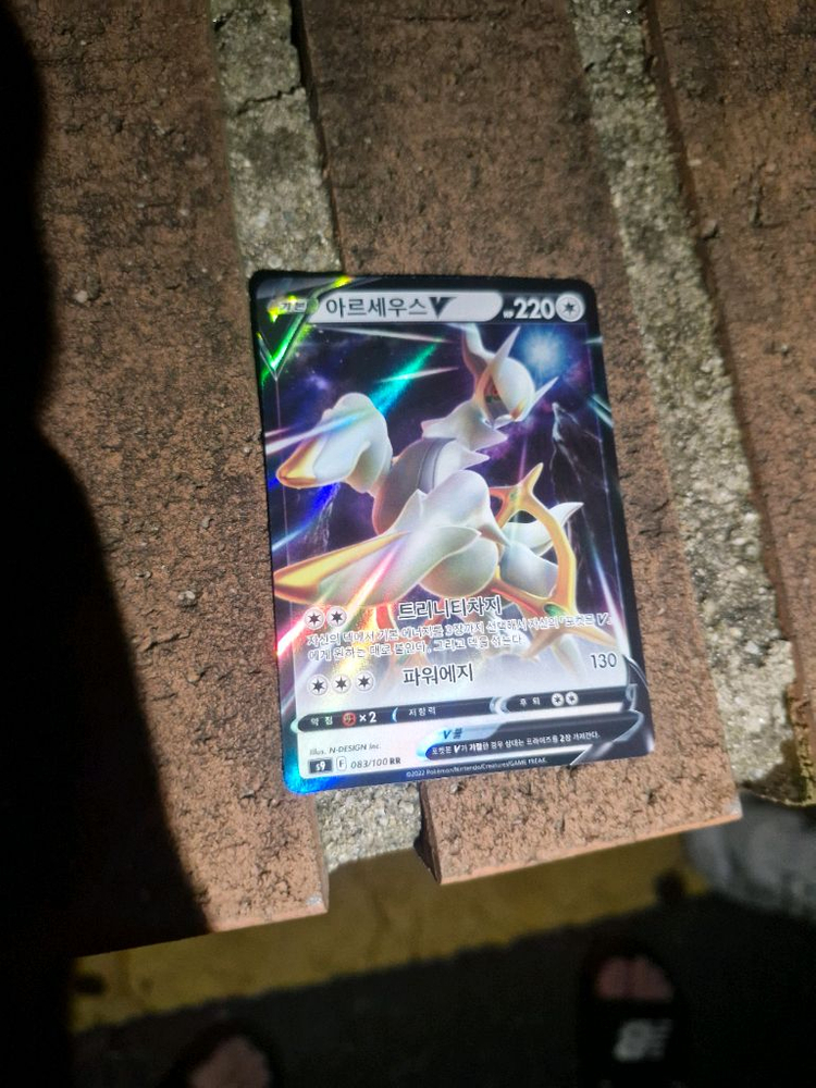 포켓몬카드 팝니다.방금 뽑아서 새상품이고 따끈따끈합니다 아르세우스 V:5500원 이벨타르:3000원 크로뱃:1500원 니로우:1000원 한카리아스:2500원 개별구매 가능합니다 택배말고 직거래만 합니다(남촌동 안에서 원하시는 곳 에서합니다) 가격 제시가능합니다 편하게 연락주세요
