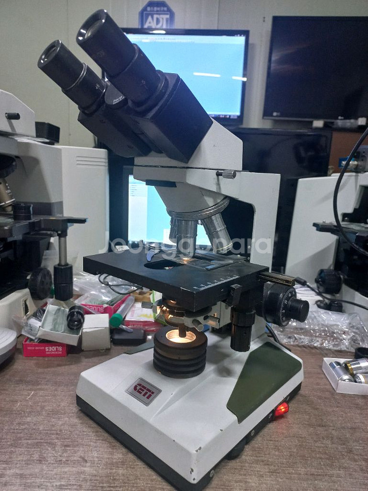 개인정보(거래정보)를 주고받는 행위는 사기에 노출될 수 있으므로 즉시 중고나라로 신고해 주세요벨기에 CETI 쌍안생물현미경 40배 100배 400배 1000배율 상태좋고 잘보입니다 사진참조 현미경 촬영용 거치대 무료증정.