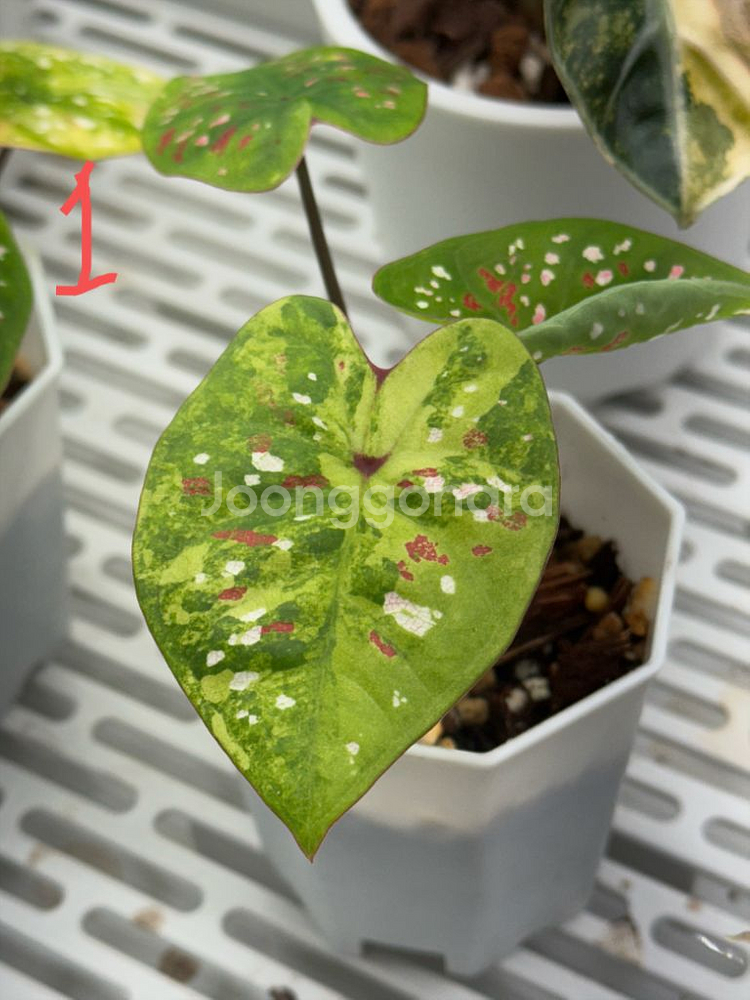 무천이 칼라디움 억만장자 바리에가타 분양해요~~ 더워지면 노란무늬지분이 흰색으로 발현됩니다~~^^ 1,2번째 사진 동일개체 35,000원 마지막사진은 모주이고 30도이상 따뜻한 여름의 발색입니다. **7-80습도에서 케어 중입니다.** 🌱🌱구매하시기 전에 읽어주세요🌱🌱 ✅환불 가능 사유 배송 완료 후 3일이내 뿌리손상이 발견된 경우 ✅환불 불가능 사유 -무늬종의 경우 추후 무늬발현 여부는 알수 없습니다. -택배 거래시 간혹 배송중 충격, 습도, 온도에 따라 잎이 못생겨질 수 있어요. 뿌리만 건강하다면 새잎 금방 쑥쑥 나오니 예쁜 새잎 보시는 쪽으로 양해 부탁드립니다^^