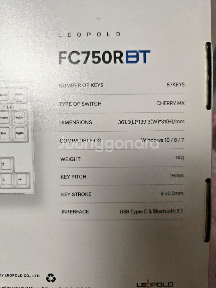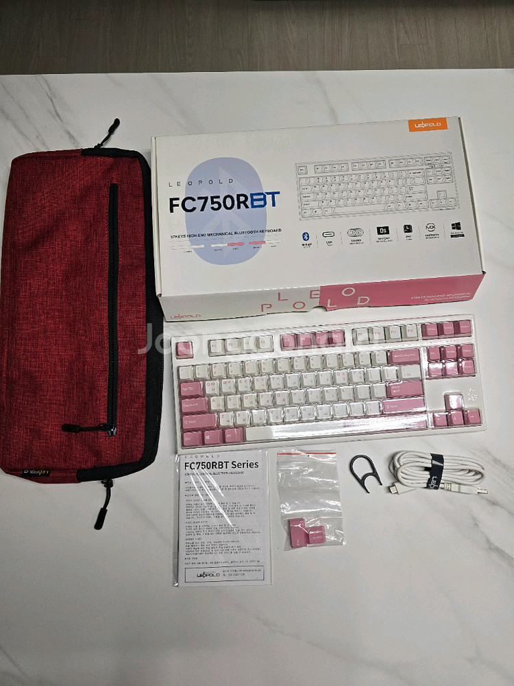 레오폴드 FC750RBT 텐키리스 저소음 적축 기계식 키보드 판매합니다. 레오폴드 공식 홈페이지에서 구입한 제품이고, 한영 키캡의 유무선 블루투스 연결 가능한 제품입니다. 구입 당시 구성품 그대로 깨끗하게 풀박스로 보관 중입니다. 소장용으로 가지고 있으려고 했으나 키보드가 많아서 공간 부족으로 정리합니다. 구입하고 4개월 정도 퇴근 후 저녁과 주말 위주로 사용하였고, 키캡 및 하우징 깨끗하게 청소하여 보관중입니다. 작동, 기능상 문제 전혀 없습니다. 저소음 적축 모델로 회사에서 조용하게 사용하기 좋고, 키감 좋습니다. - 모델 : FC750RBT 텐키리스 리니어 저소음 적축 - 색상 : 라이트 핑크 & 화이트 - 풀박스 : 패키지, 키보드, 케이블, 설명서/보증서, 여분키캡, 건전지, 플라스틱 키보드 덮개, 키캡리무버 - 구입가 : 167,500원 (공식 홈페이지 구입) - 레오폴드 공식몰에서 함께 구매한 19000원짜리 텐키리스 키보드 파우치(색상 : 빨강)를 함께 드립니다. - 전자제품이라 파손 가능성이 있어 직거래 권장드립니다. - 택배 거래 원하시는 경우에는 택배비(4,000원) 부담해주시면 파손면책 동의 후 CU 편의점 택배 이용하여 발송해드립니다. - 네고 등 구매 원하시는 분은 채팅 주시면 빠르게 답변 드리겠습니다.
