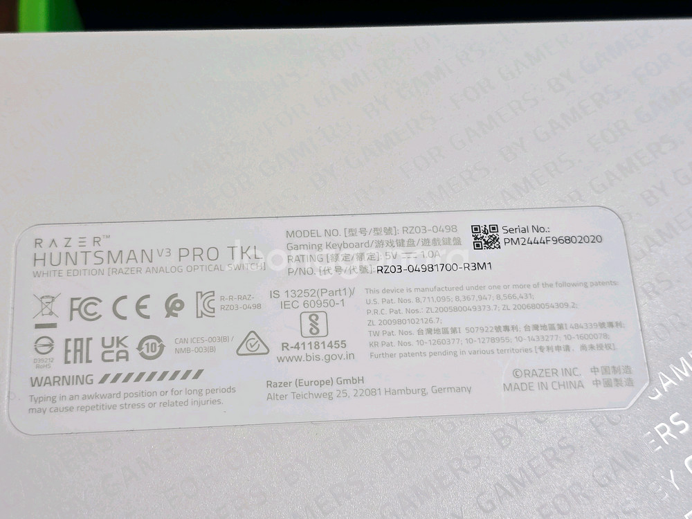 레이저 헌츠맨 v3 pro TKL 키보드입니다. 사용은 2달정도 했었고, 제 손이랑은 잘 안맞아서 판매합니다. 기스같은건 따로 없고 상태는 좋습니다.