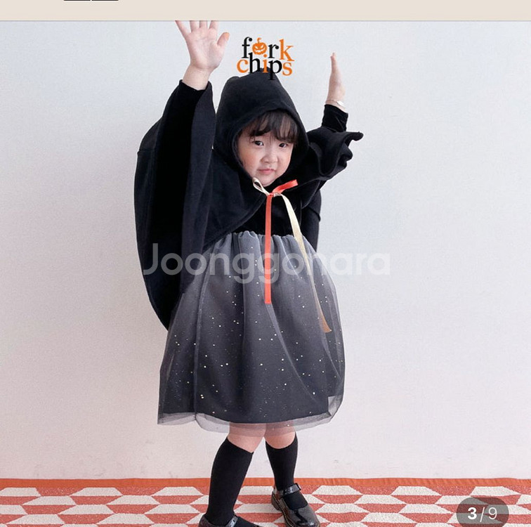 7살 여아 할로윈에 입혔던 망토 원피스에요 한두번 착용해서 상태 나쁘지 않아요 생일이나 파티원피스로도 반짝이가 이뻐서 예뻐요 망토는 키즈m, 원피스는 2xl 입니다 택비 4천원
