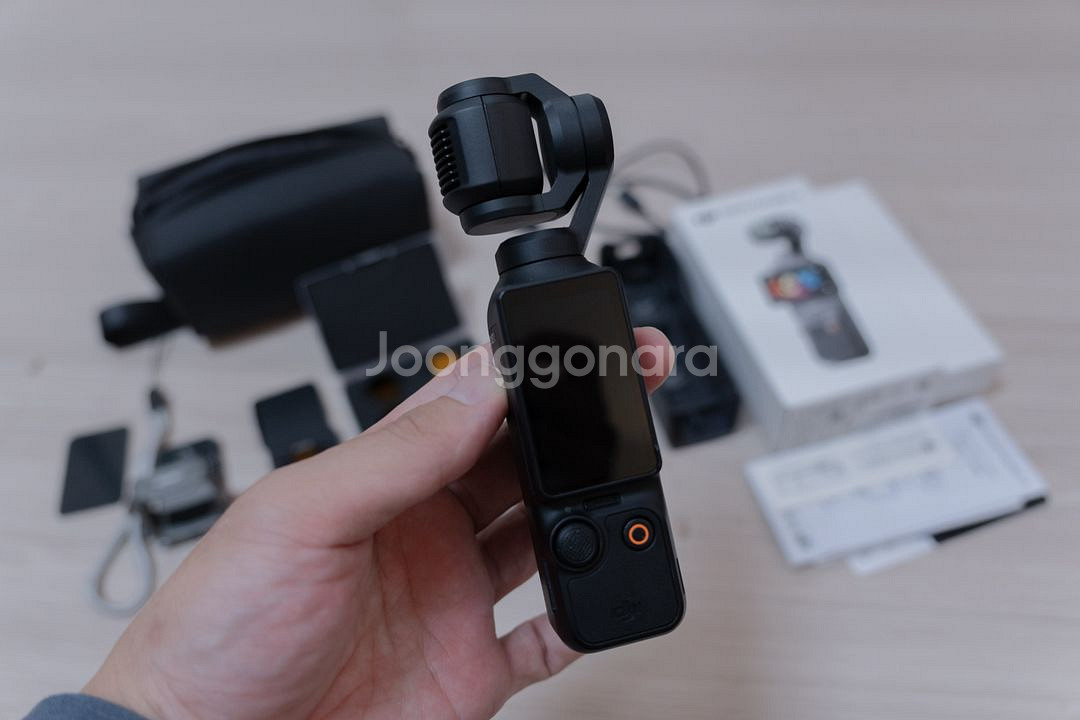 작년 말, 1차 구매자입니다. 악세사리까지 다 장만했는데 결국 미러리스로 주로 촬영하게 되어 판매합니다. DJI 케어도 들어두긴 했는데, 1차구매자에게만 적용될듯합니다ㅠ 📦 구성품 * DJI 오즈모 포켓 3 본체 (4K, 3축 짐벌, 정품) — 649,000원 * DJI 전용 휴대 가방 — 31,600원 * 삼성 microSD 카드 128GB — 24,200원 * 액션캠 마운트 — 18,170원 * 마그네틱 마운트 — 27,000원 * ND 필터 세트 (ND16 / ND64 / ND256 / CPL) — 40,000원 * ND8 필터 추가 — 17,200원 80만원 이상 들었네요, 잘 쓰실 분 가져가세요~^^