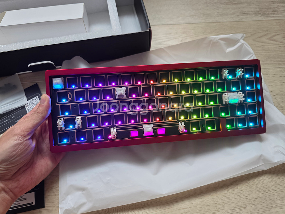 레드 색상이고 실사용 일주일 미만입니다. 스위치 교체로 인한 체결흔은 남아 있을 수 있습니다. 무선 및 led 이상없습니다. 1.6mm 논플렉스 기판도 함께 판매합니다. 택포 가격입니다. 완충재로 잘 감싸고 박스에 담아서 안전하게 보내드려요. 연락주세요. (네고X 안전결제X 입금후취소X 타건음요청X)