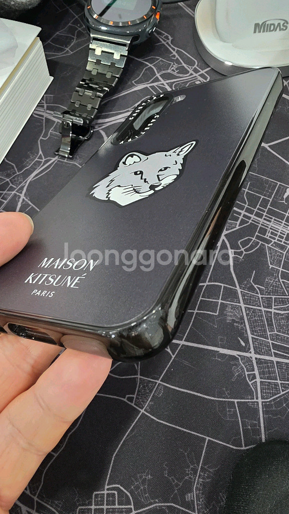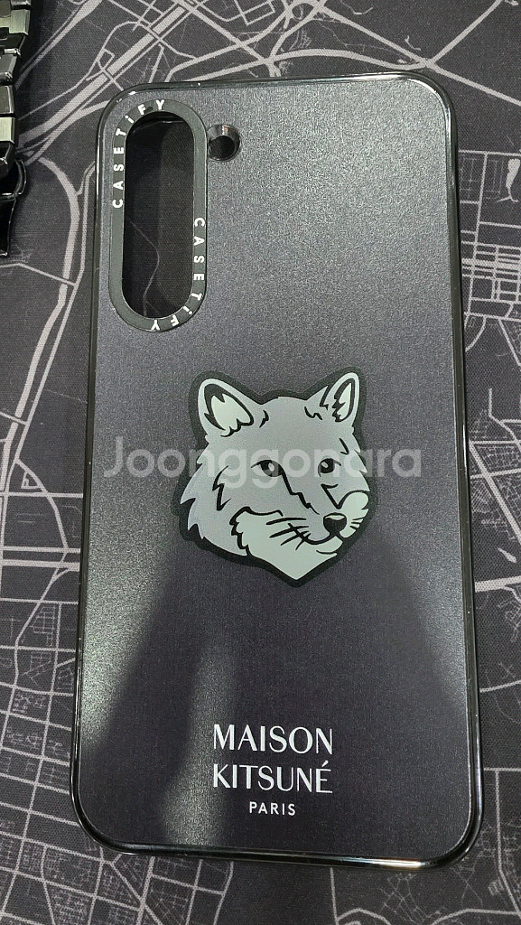 케이스티파이와 메종키츠네 콜라보 갤럭시 S23+ 플러스 케이스입니다! 지금은 콜라보 만료로 구하기 어려운 상황입니다. 내구성 아주 좋고 전반적인 상태 깨끗합니다. 다만 모서리 부분에 약간의 까짐이 있습니다(사진 참고). 감안하여 가격 책정 했습니다.