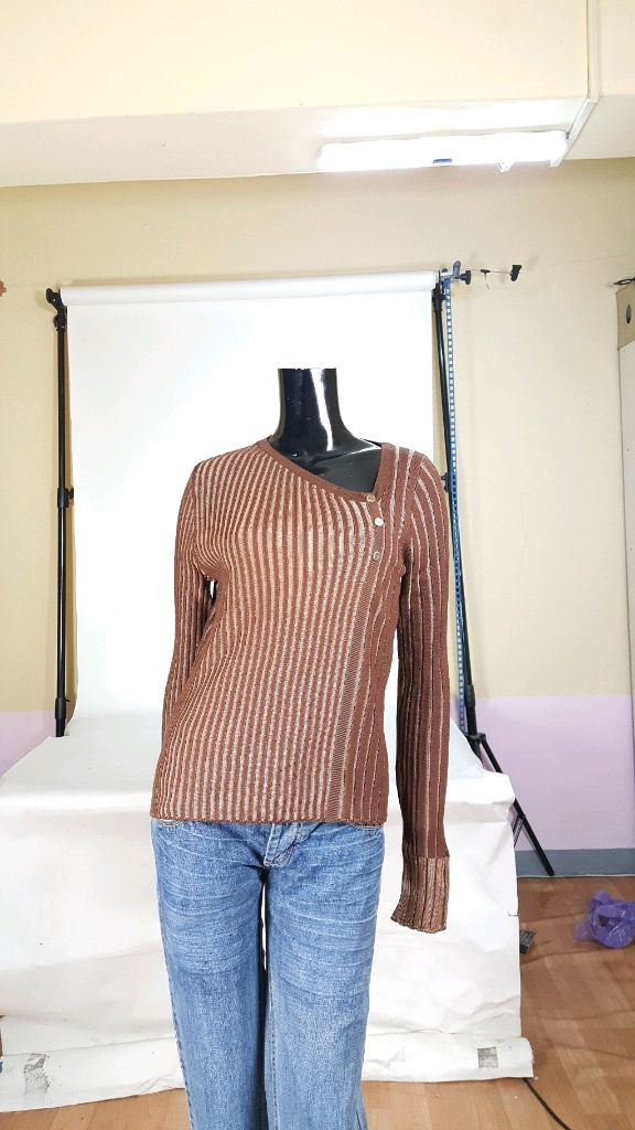 페라가모 브라운색 울 여성 니트 입니다. 50%울 50%천연 비스코스의 최고급 소재로 아주 가볍고 부드러우며 도톰한 환상적인 이태리 원단입니다. 세로 무늬 쫄쫄이 조직으로 신축성이 탁월합니다. 퍼스트라인 명품 브랜드 상품답게 최고급 원단를 사용했습니다. 사이즈는 이태리 M,L(한국 사이즈 66,77) 있습니다. 매장가 100 만원대의 아주 고가 상품입니다. 이태리에서 직수입한 made in Italy 제품이고요 사용하지 않은 새상품입니다.
