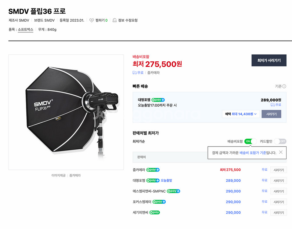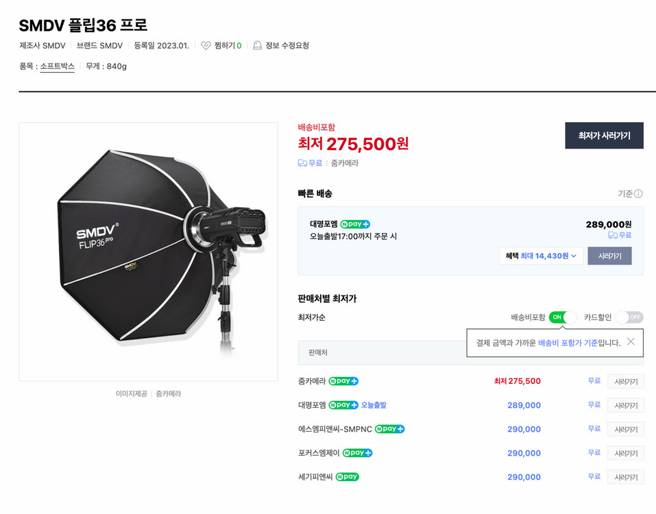 emdv filp36pro 플립 소프트박스 미사용품