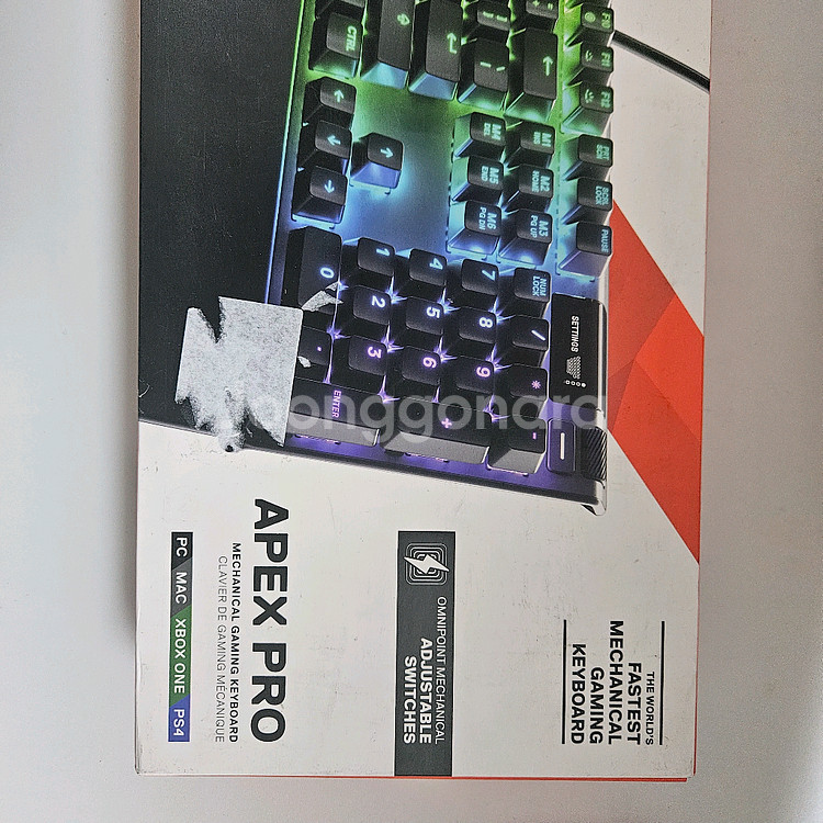 스틸시리즈 Apex Pro US 기계식 유선 게이밍 키보드 모델명kb-00009 미사용 새제품입니다 스펙 1. 영문 기계식 2. 유선 3. 마그네틱 손목패드 4. 멀티미디어 컨트롤 5. usb패스 스루 (5번째 사진에 usb) 1개는 전원연결용 1개는 키보드 본체 바로 뒤에 핸드폰이나 헤드셋 연결할수 있는 연결선 감도 조절 가능한 키보드 조명도 잘나와요 자세한 사항은 모델명 확인후 검색부탁드립니다 제품상태는 사진참조 택배×
