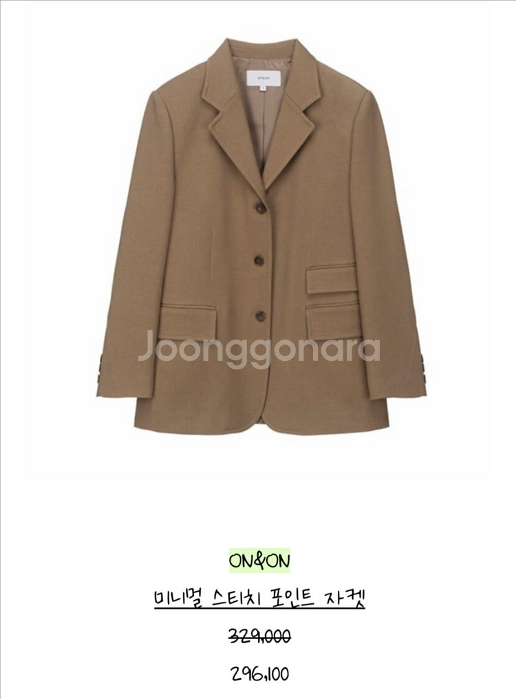 온앤온 온앤온 미니멀 스티치 자켓 베이지 55 온앤온 미니멀 스티치 자켓 베이지 색상 55사이즈입니다. 핏이 예뻐서 슬랙스나 데님이랑 코디하기 좋습니다. 지금 날씨에 가볍게 걸치기 좋은 자켓이에요. 실 착용 2번으로 오염이나 얼룩없고 깨끗합니다 55사이즈입니다 살짝 도톰한 재질입니다 평일 우체국 영업시간내 거래하시몀 당일 발송 해드립니다