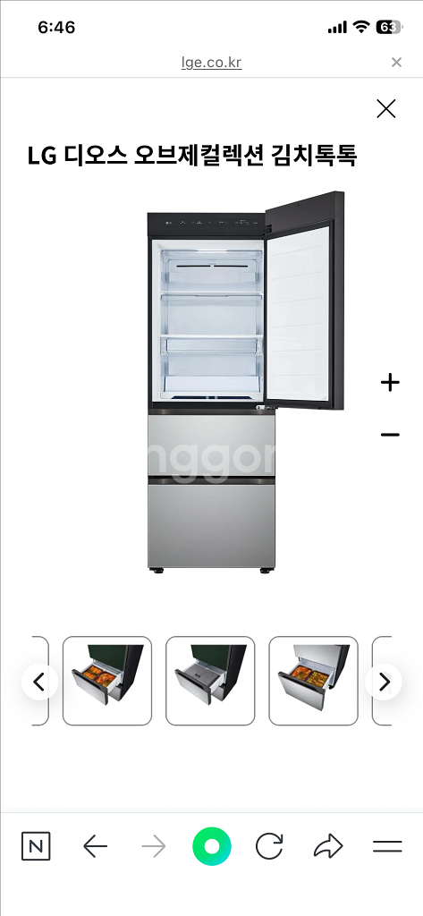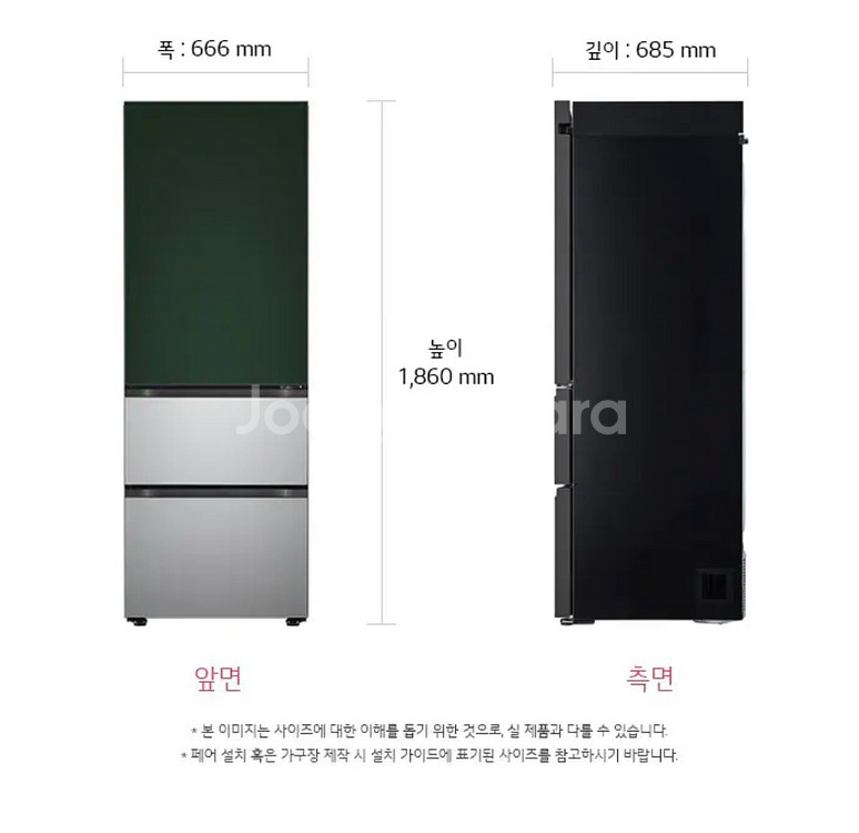 LG 디오스 오브제컬렉션 김치냉장고 판매합니다! -2022년2월구매 -김치통2개만 사용(중칸) -나머지(상칸,하칸)는 야채와 곡물 보관 -전체적으로 깨끗한편이지만 중고제품인점 감안해주세요 -이사로 인해 11/17일 제품을 내려드릴수 있습니다 -구매후 반품 환불 안됩니다 사이즈는 폭 666mm, 깊이 685mm, 높이 1,860mm입니다 색상은 STS-그린/실버입니다 스펙 요약 정보 전체 용량 (L) : 323 도어스타일/재질 : 스테인리스 인공지능 맞춤 보관 : O