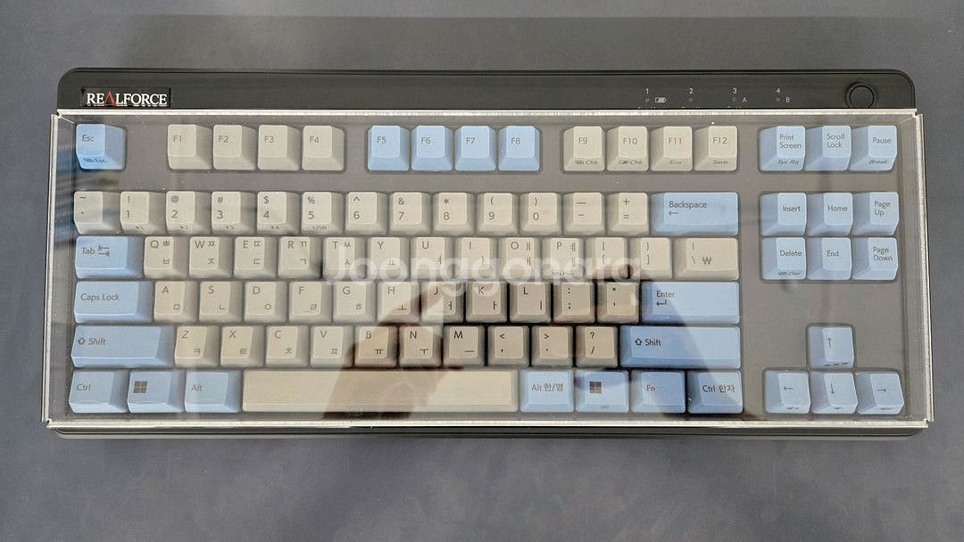 REALFORCE R3HDK1 키보드 판매합니다 키보드 끝판왕 리얼포스 한글각인 키보드 판매합니다. 이뻐서 텐키리스 샀는데 숫자키 많이 사용하여 잘 사용하지 않았습니다. 매우 깨끗합니다. (신품가 390,000원) 구성 - 블루투스 5.0/USB 2.0 연결 지원 - 87키 US 레이아웃 - 승화 인쇄 방식으로 제작되었습니다 - 45g 소프트 택타일 키감으로 편안한 타이핑이 가능합니다 - APC (Actuation Point Changer) 기능으로 키 입력을 조절할 수 있습니다 - 구성품은 키보드 본체, 설명서, USB 케이블, AA 건전지 2개입니다. -박스까지 다 있습니다. 구매할때 받은 키보드 아크릴 덮개 같이드려요