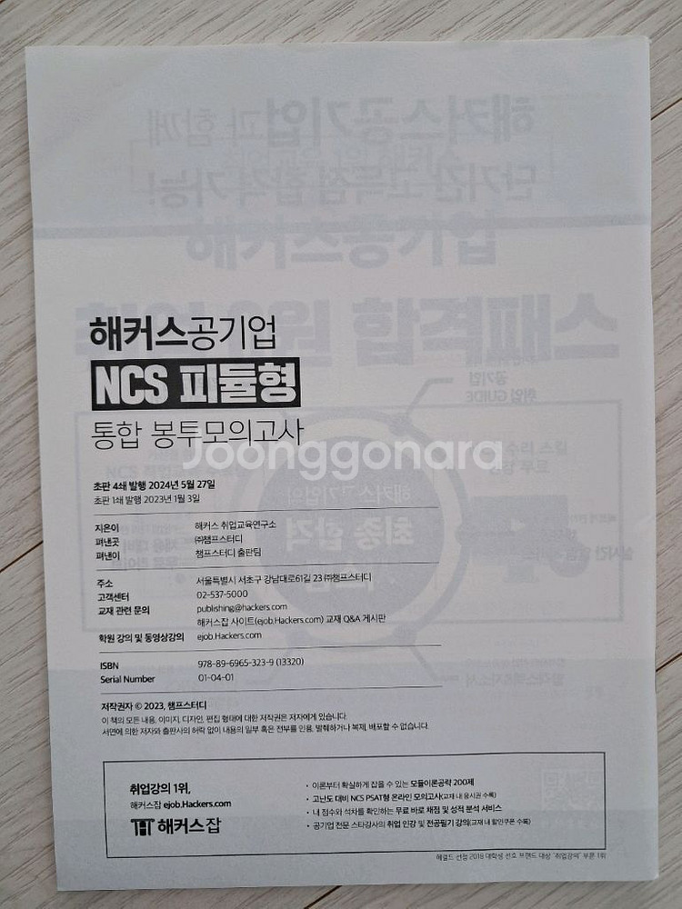 2024 해커스공기업 NCS 피듈형 파이널 통합 봉투 모의고사입니다 - 실전모의고사 1회, 2회, 3회, 4회, 5회 - 마무리 모의고사 - 핵심 영역 봉투 모의고사 - 약점 보완 해설집 2024년 5월 27일 초판 4쇄 발행 반값택배로 보내드려요.