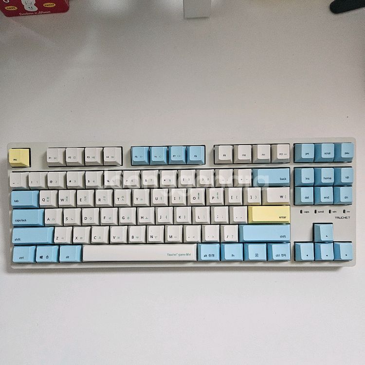웨이코스 저소음적축 기계식 키보드 웨이코스 씽크웨이 토체티 텐키리스 D&T 콜라보 체리 게이밍 기계식 키보드 스펙 파스텔블루, 저소음적축 흡음재 내장 정방향 스위치 염료승화 <구성품> 쓰리톤컬러 키보드 본체 케이블 타이 1개 A to C 분리형 케이블 1개 C to C 분리형 케이블 1개 투명 키보드 덮개 블리스터 - 누락 구성품 - 키 리무버 사용 설명서 스페어 키캡 2개 택배×