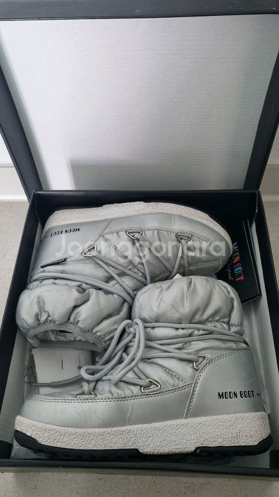 베이비샵 직구로 구매했었구요. 몇년전 구매했지만 몇번 눈올때 신고 실착 횟수는 많지않아요. 사용감은 사진 확인해주세요. 인기많은 실버 색상이고 사이즈는 32eu이고, 200사이즈 정도 됩니다. 박스랑 택 그대로 있구요. 택포 7만이요. 사이즈 문의 × , 환불 × 신중구매 부탁드려요.