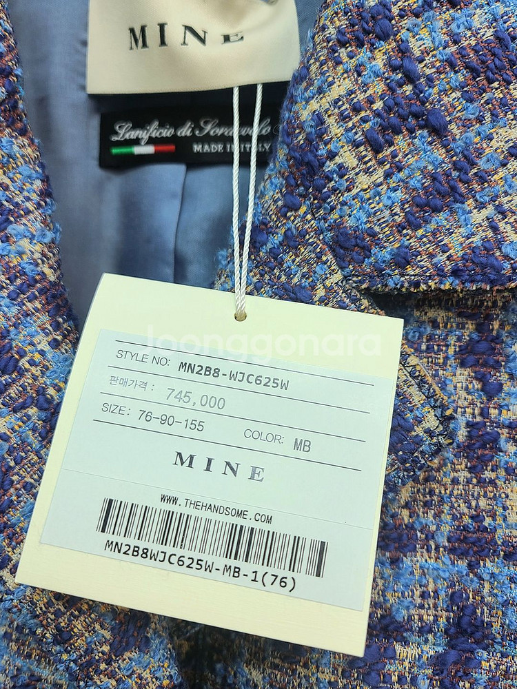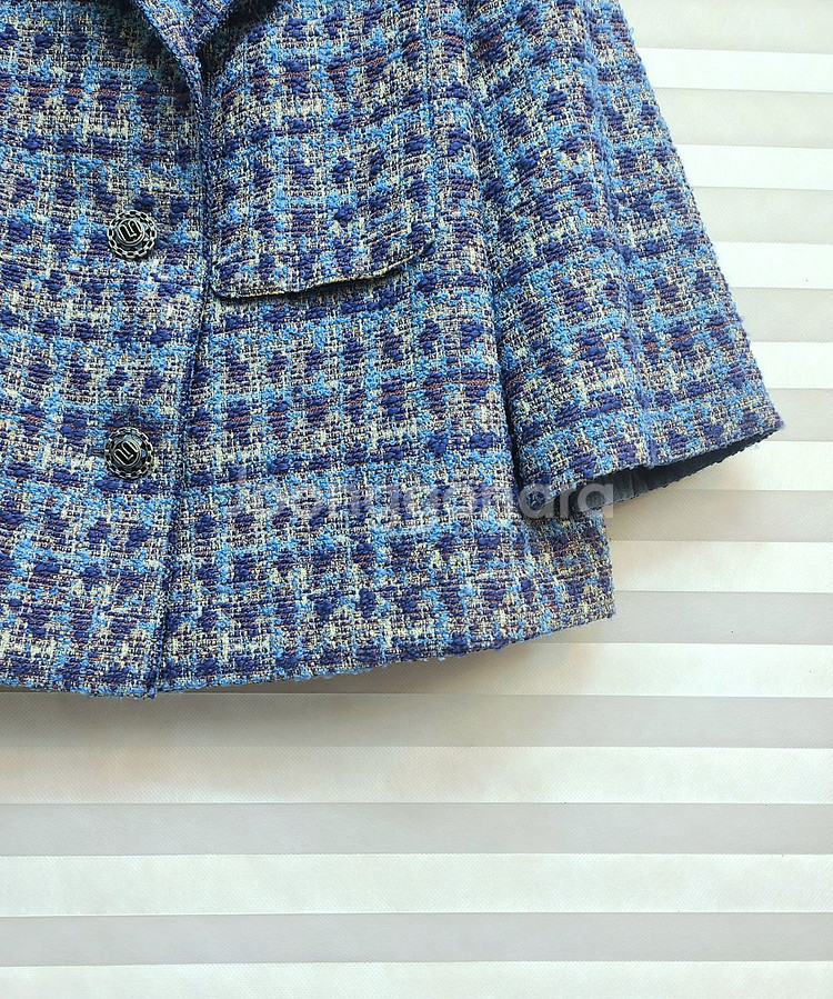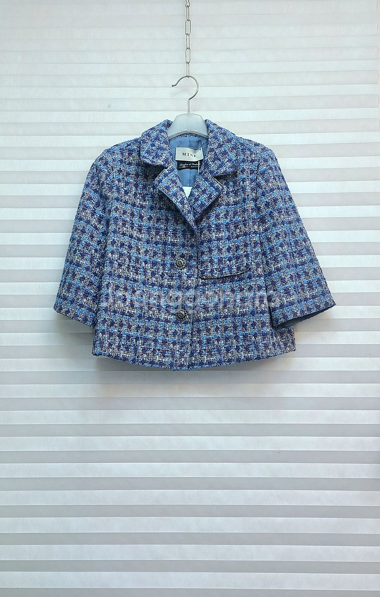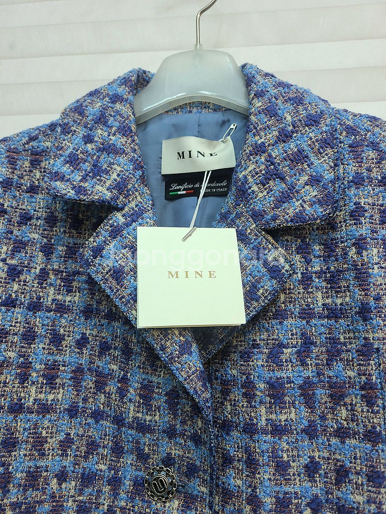 55~66사이즈 가슴반품 50 기장 52 마인 트위드 자켓입니다. 블루톤의 배색 컬러가 아주 고급스럽게 예뻐요. 트위드 소재인데 가볍구요. 면모 혼방 소재라 셔츠나 니트티에 지금부터 걸쳐입기 좋아요. 판매가격 745천원. 택달린 새상품입니다.