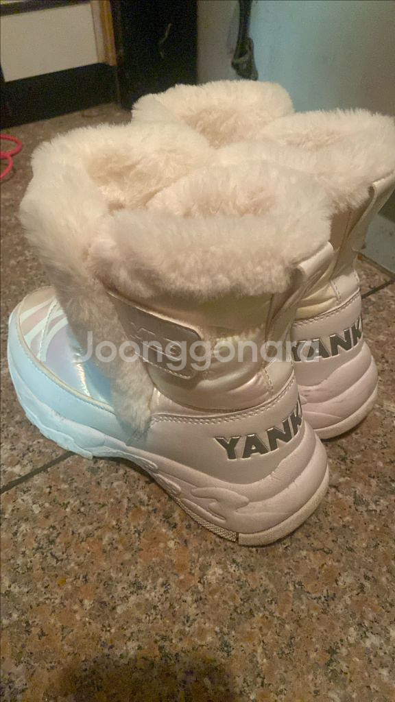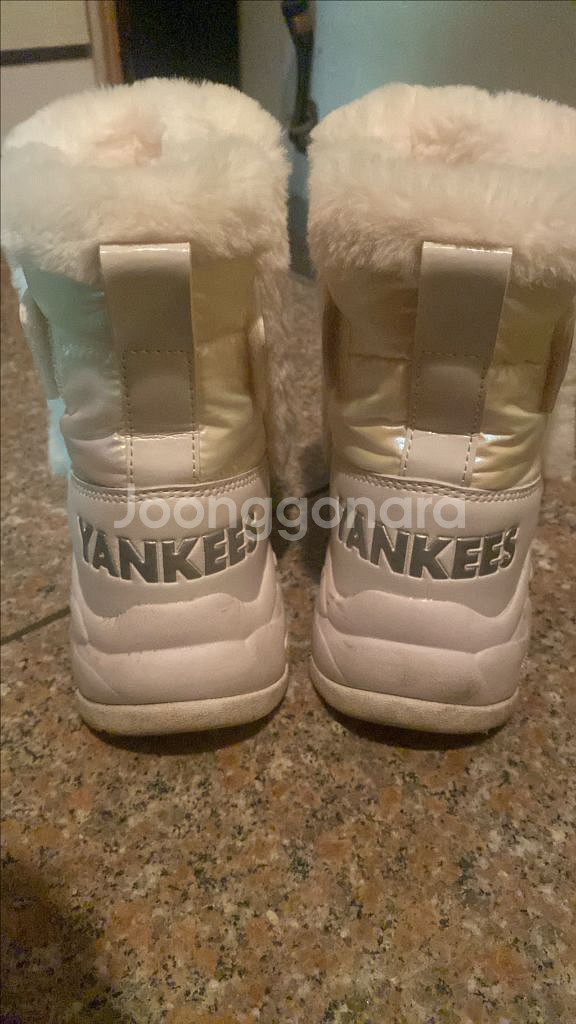 MLB 키즈 털 부츠 Yankees 디자인 - 사이즈는 210 - 털 안감으로 따뜻하고 포근한 착용감 - Yankees 로고 포인트 - 신고 벗기 편하도록 찍찍이 디자인 하얀색 따듯하고 이뻐요 잠깐 신고 작아졌어어요