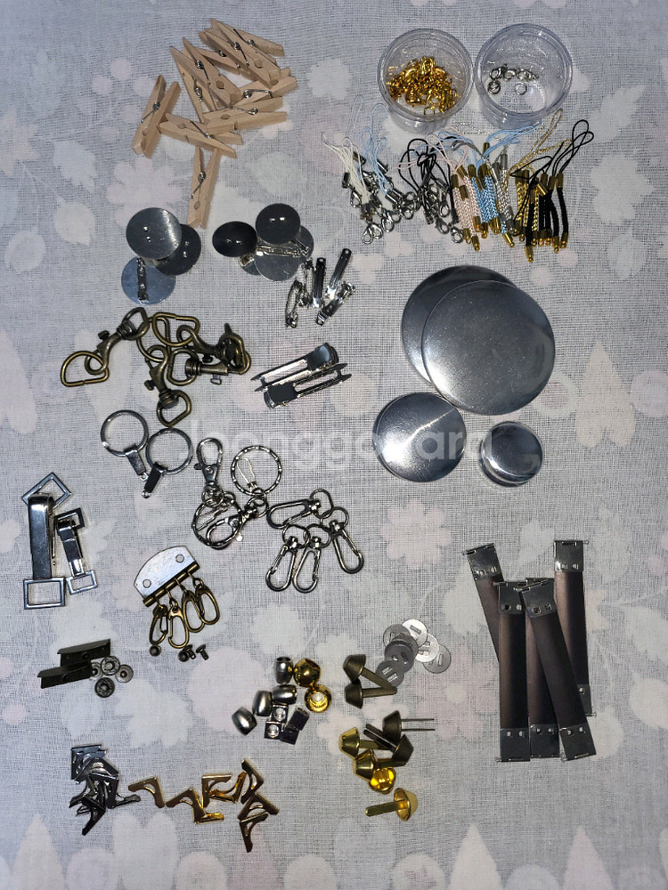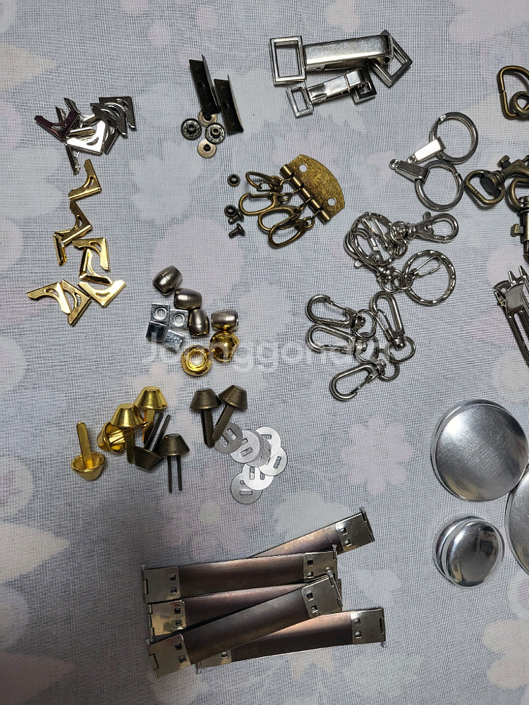 다양한 작품에 활용이 가능한 부자재 모음입니다. 바네, 코너장식, 가방발, 끈마감장식, 마카롱 만들기,가방이나 휴대폰장식등.... 보관하면서 생긴 세월의 흔적 있을수 있지만 사용하지 않은것들입니다. 구매시 참고해주세요.