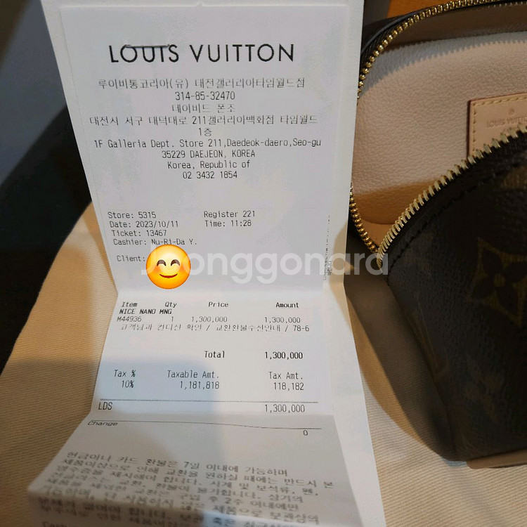 루이비통 니스나노 클러치백 m44936 풀세트 판매합니다. 박스, 보증서까지 모두 보관하고 있습니다. 10회정도 사용해서 상태 A급입니다. 바디 : 양호 핸들 : 카우하이드 옅은 얼룩, 잔때탐A 내부 : 양호 모서리 : 테두리 포함 미세한얼룩 및 미세 마모 -내장칩 제품입니다.