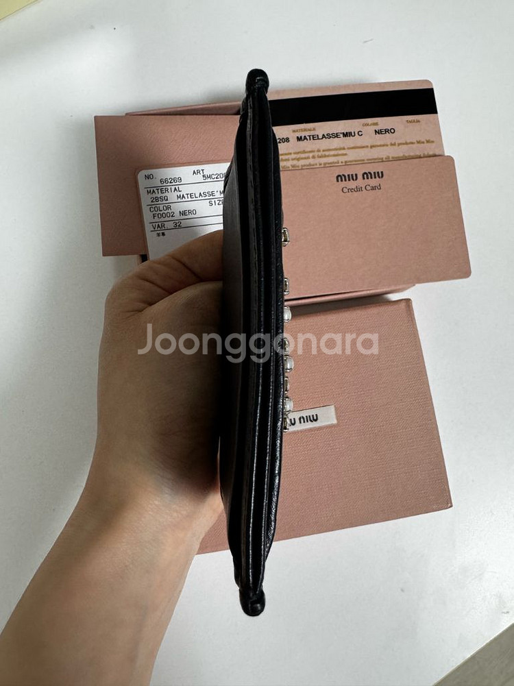 ❌외부채널유도 신고합니다❌ 미우미우 마틀라세 카드지갑 블랙입니다 한두번 사용했고 뒷면 카드자국만 있어요 아끼는건데 내놓아보아요🥲 가죽상태는 찍힘 긁힘 없는거같은데 사진 참고해주세요~ 박스도 같이 드려요! 이디자인에 이정도 컨디션은 이제 못구하신다고 저는 생각합니다! ▫️환불 및 교환 불가 ❗️일반택배 택배비 4000원❗️