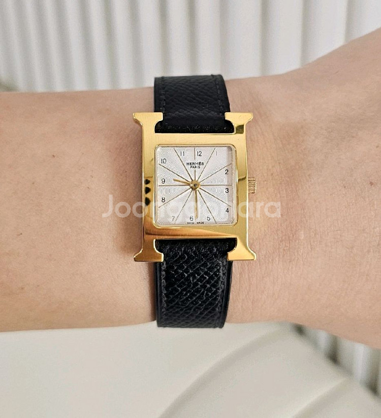 정품 에르메스 h아워 금장 여성시계입니다 구형이지만 상태좋습니다 사실 구형 신형 금액차이가 조금있지만 외관은 같습니다 금액차이가 상태에서 조금 차이가 난다고생각하시면 되는데 상태는 본체부터 가죽밴드까지 너무좋구요 20mm상품이며 모든부분 에르메스 재치 순정입니다 금액대가 있는상품이고 가품도 많은 상품이라 무브먼트부분 사진까지도 올렸습니다 확실한정품입니다 걷박스 하드케이스 사진엔없지만 쇼핑백 구성품 같이드립니다