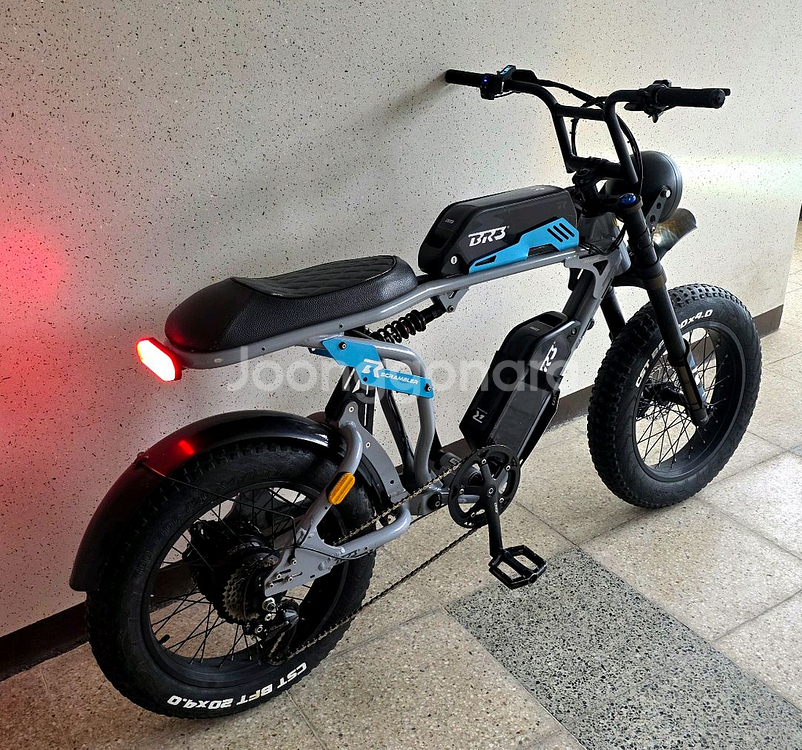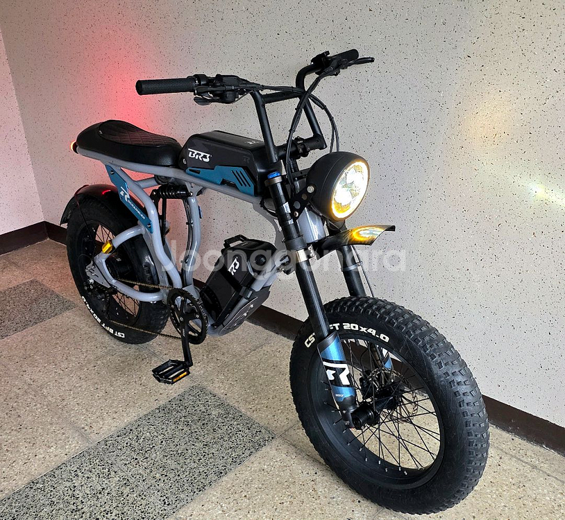 BR3 스크램블러 / 전기자전거 / 자토바이 / 듀얼배터리 2023년말 구매 20인치 풀샥 팻바이크 모터 1000W LG 듀얼배터리 48V 20A+20A(40A) PAS&스로틀 겸용 최고속도 50km(리밋해제시) 총주행거리 1800km 유압브레이크 시마노 9단 기어 더블크라운 에어샥 에어 리어샥 기본 전조등&후미등 추가배터리 70만원 신차 가격 389만원이였구요. 옵션 포함 대략 450 정도 들었습니다 세련된 그레이 컬러입니다. 실물 보면 정말 이쁩니다. 앞뒤 풀샥이라 승차감 아주 좋구요. 모터 힘이 좋아 웬만한 언덕 다 올라갑니다 리밋걸면 25km 속도로 자전거도로 진입 가능합니다 듀얼배터리라 배터리 걱정없이 타실 수 있습니다. 배터리 등 관리 잘하면서 탔습니다. 세차하고 실내보관 중이라 컨디션 좋습니다. 생활기스, 조금의 사용감 있고 하자는 없습니다. 경기도 성남 직거래 및 용달거래 https://www.br3.co.kr/product/eb1dd3b3-d07c-45e7-b907-78f1378d893f-10