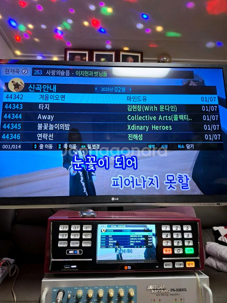 노래방 풀세트입니다 - LG TV와 KVC 스피커로 생생한 음향을 즐길 수 있습니다 tv 스텐드 스피커 스텐드 lg 47인치 led tv 500와트 고출력 앵프 led 조명등 리모콘과 책자 마이크 2개와 마이크스텐드 행사용 고성능 12인치 스피커 - TJ미디어 c70 반주기로 최신곡 업데이트 완료 (2025년 2월까지) - 노래방 조명으로 분위기를 더합니다
