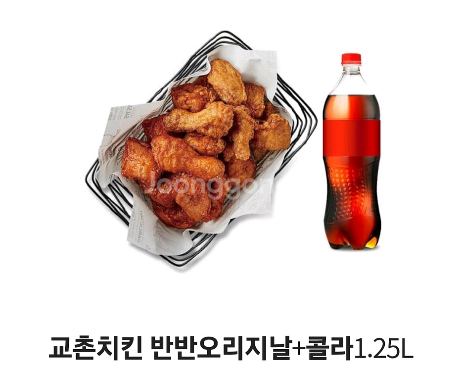 교촌치킨 반반오리지날+콜라1.25L 유효기간 : ~2025 / 11 / 21 기프티콘 쿠폰으로 바로 전송해드립니다!