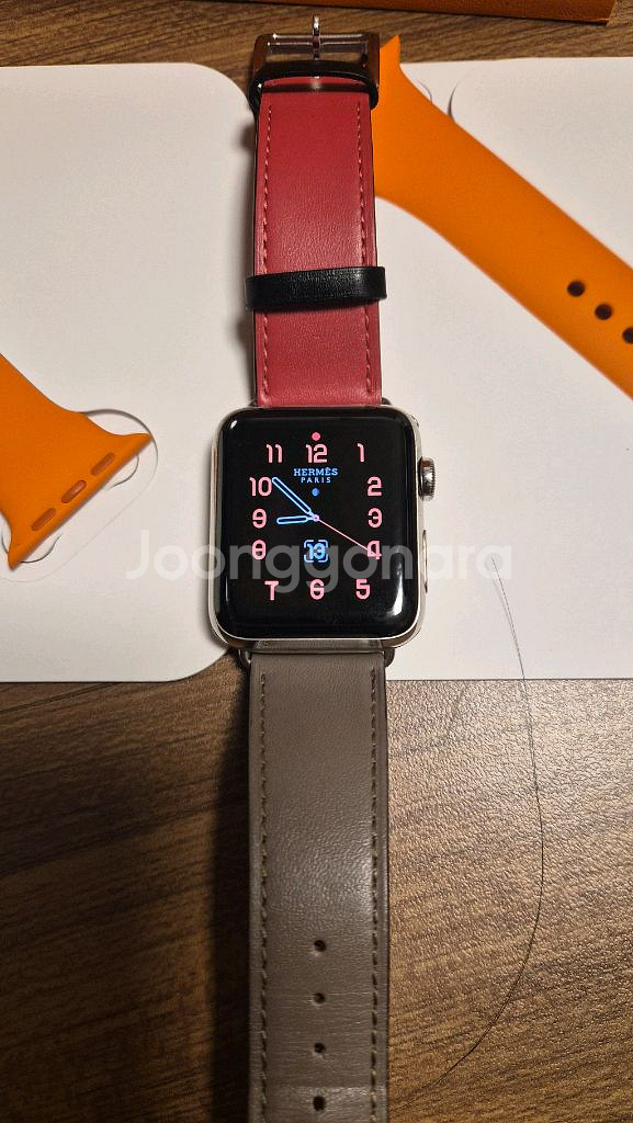 에르메스 애플워치3 애르메스 팝니다 상태는 사진으로 확인부탁드립니다 기기작동 전혀 이상없습니다 오렌지색 밴드는 정품으로 전체구성에서 정품 에르메스 가죽줄만 제외됩니다 그간 모았던 필름이나 케이스 줄등 미사용품으로 많이 챙겨드립니다 필요하신분은 연락주세요 -010 -5713- -5551-