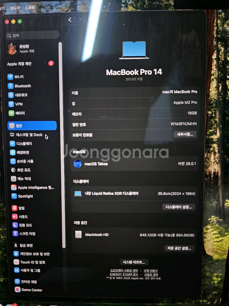 안녕하세요 ㅎㅎ 맥북프로 m2 pro 14 램 16gb 저장공간1tb 실버 영문자판 판매합니다ㅎㅎ 간단한 사진보정 목표로 구입했다가 다른제품 구입해서 판매합니다ㅎㅎ.. 상태 좋습니다. 왼쪽상단쪽에 살짝? 눌림 있는데 심하지 않습니다. 애지중지 잘 사용했습니다ㅎㅎ.. 배터리효율도 좋습니다. - 2023년 모델 - cpu 10코어, gpu 16코어, 메모리 16gb (사진참고) - 배터리 94% (사진참고) - 구성품 : 맥북 본체, 정품 맥세이프 충전기 구매후 교환, 환불 불가하며 구매의사 있으신분들 부담없이 연락주셔요 :) 대구직거래 택배거래 +4,000원 우체국택배(노리턴, 파손 면책 동의)