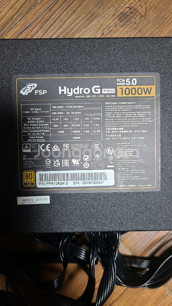 FSP Hydro G Pro 1000W 풀모듈러 파워입니다 - 80 PLUS GOLD 인증을 받은 고효율 제품입니다 - 풀 모듈러 디자인으로 깔끔한 선정리가 가능합니다 - 안정적인 전력 공급으로 시스템 안정성을 높여줍니다 제조일자는 2023년 5월입니다