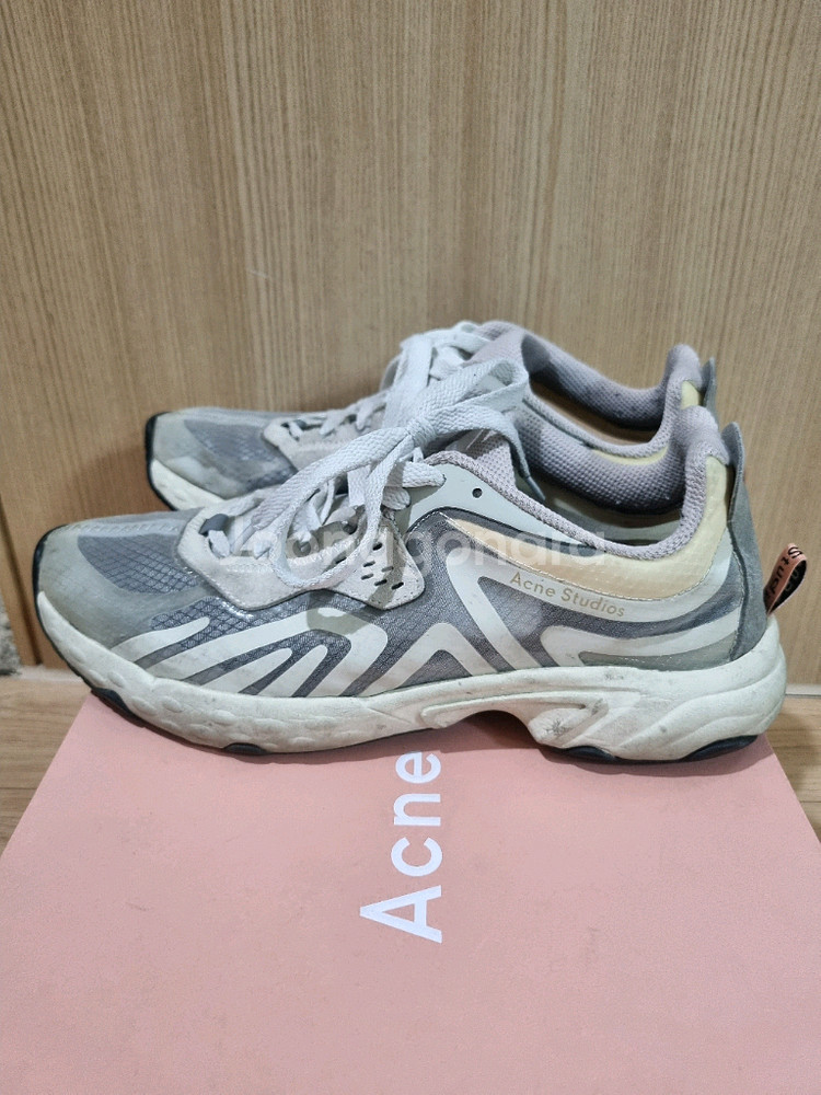 아크네스튜디오 러닝 메쉬 스니커즈 판매합니다. 방금 찍은 사진이고 사용감은 있지만 상태 좋아요. OG제품으로 뒤쪽에 핑크택 달려있는 제품입니다. 39사이즈 이며 지금 신기 너무 이쁜 제품입니다. 박스도 있는데 박스는 약간 손상 있어요. 직거래,택배거래 가능해요. 연락주세요