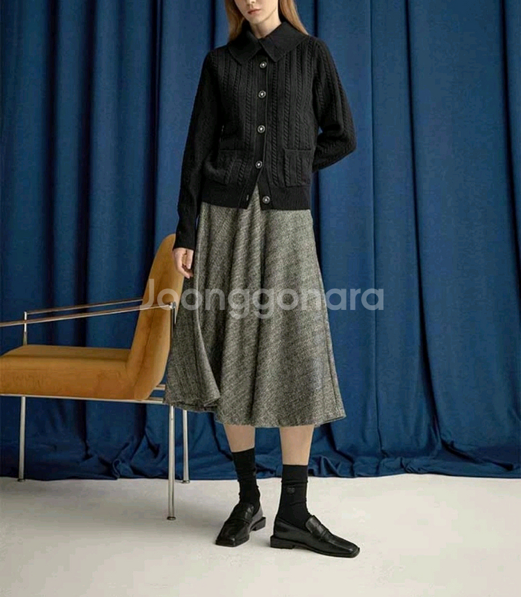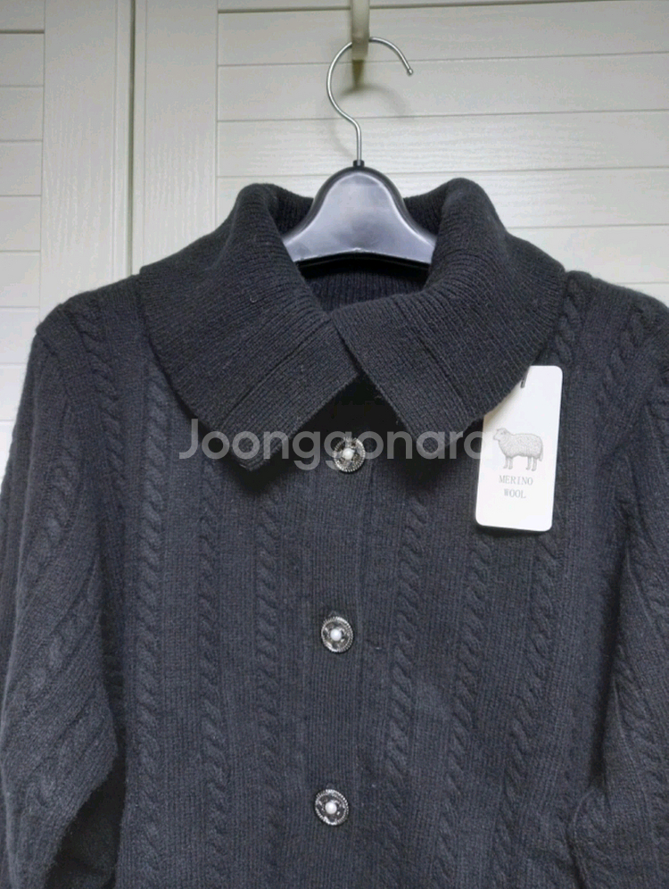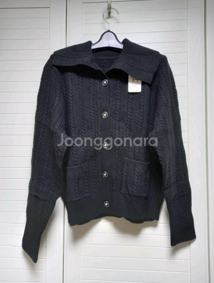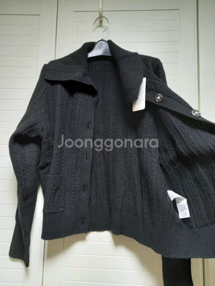 🎯 GS택배 가능합니다. (일반택배 3500원, 반값택배는 1800원 추가해 주세요.) 적당한 두께감으로 형태감이 좋은 니트 재킷입니다. 넓지 않은 케이블 직조가 매력적으로, 이너로도 아우터로도 활용 가능합니다. 여유로운 카라넥으로 버튼을 다 채워 터틀넥으로 연출할 수 있습니다. (첫번째 사진으로 확인해 주세요.) 블랙 색상으로 88사이즈입니다. 🎀 브랜드 라벨 제거되어 있습니다. 접어두어서 구김 있습니다.