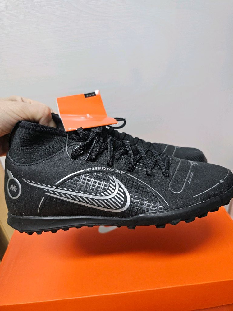 나이키 머큐리얼 슈퍼플라이 8 클럽 TF 230사이즈 주니어 풋살화, 여성 풋살화 새상품 나이키 코리아 제품입니다. 박스가 찌그러져서 버려서 다른 박스에 넣어드려요.