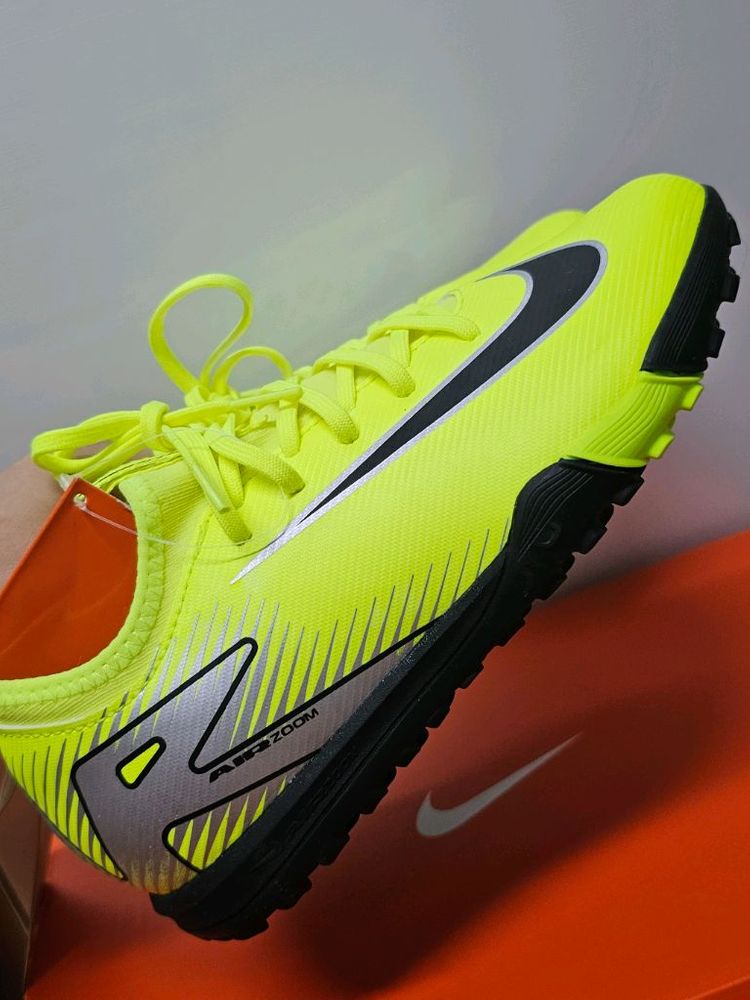 나이키 줌 베이퍼 16 아카데미 TF 풋살화 축구화 225사이즈 새상품 나이키 코리아 제품 색상 예쁜 형광연두색이예요. 딱 보고 너무 예뻐서 사왔는데 아이가 자기 스타일 아니라고 안신는대요.