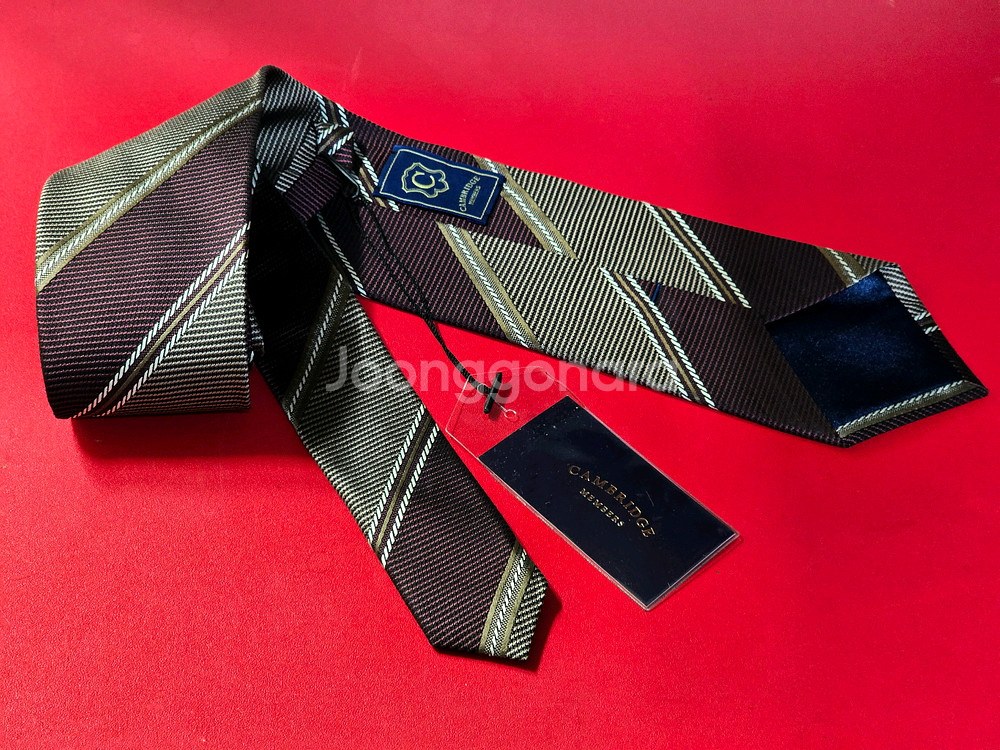 캠브리지 멤버스 남성용 넥타이입니다 은은한 색감의 사선 스트라이프 패턴이 고급스러워요 격식 있는 자리나 데이트룩에 매치하기 좋습니다 갈색과 자주색이 섞인 줄무늬 패턴이 세련된 느낌을 줍니다 미사용 넥타이로 박스는 없습니다