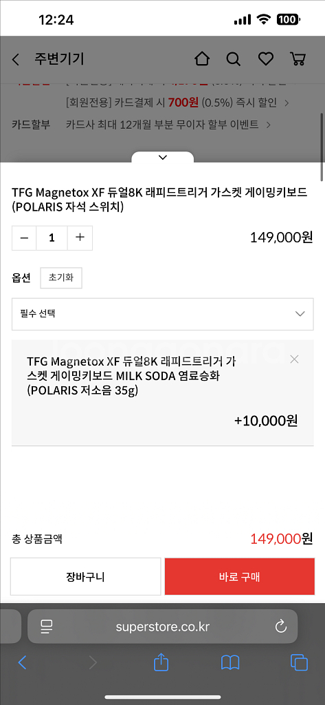 제품: 한성 TFG Magnetox XF 듀얼8K 래피드트리거 가스켓 게이밍키보드 MILK SODA 염료승화 (POLARIS 저소음 35g) 한두달전에 14에 사고 두어번 쓰고 컴퓨터 할 일이 없어서 팝니다 요즘 굉장히 핫한 키보드고 저소음캡 달아서 타이핑 치는 소리가 거의 무음수준으로 조용한거 원하시는분껜 딱입니다 상태는 거의 새것과 다름없고 풀 구성품입니다 직거래 선학역 1,2번 출구쪽에서 합니다 그 외 택배거래