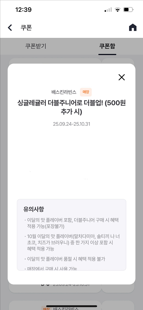 각 브랜드별 할인쿠폰 판매합니다 사용방법 사용기한 나와있으니 구매하실분 챗주세요 장당가입니다 배스킨라빈스는 없어요