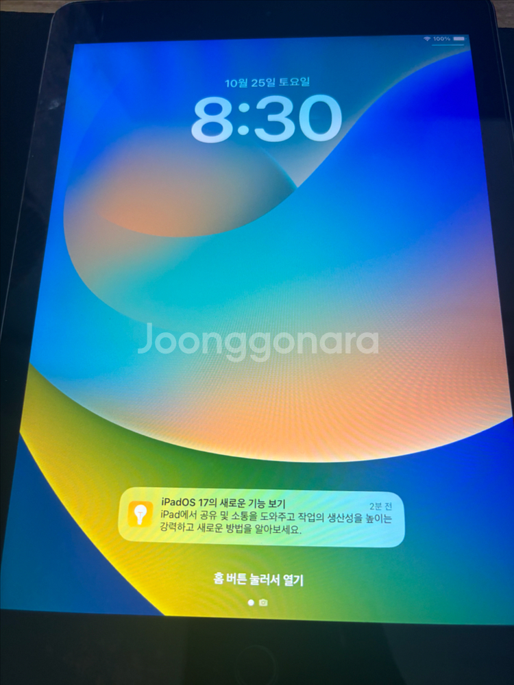아이패드 6세대입니다! 터치 소리 지문인식 화면 다 정상작동합니다~ 순 사용기간은 3~4년 정도 됩니다. 외관은 생활감 있어요! 화면에는 기스없고 필름도 부탁되어 있는 상태예요. 단 오래된 제품인 만큼 배터리는오래 안가는 것 같아요. 충전인식이 느리게 될 때가 있어요! (동영상 첨부) 100%까지 충전됩니다! 저렴하게 팔아요!! 배송시 파손되지 안도록 꼼꼼하게 포장하여 보내드려요~ 쿨거시 충전기 케이블 넣어드릴게요!