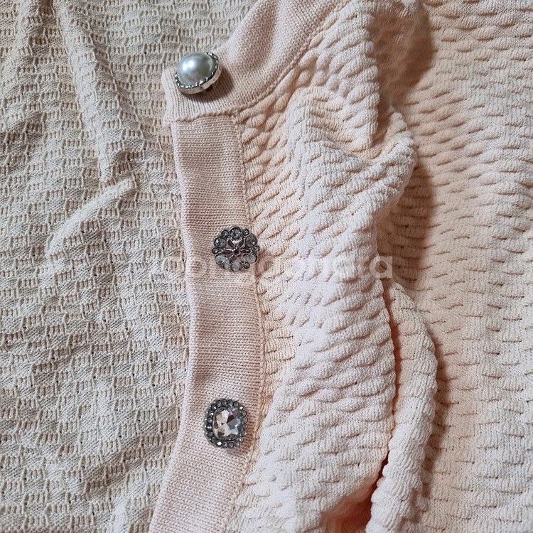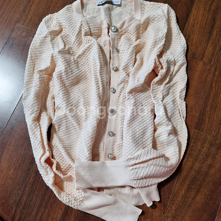 ZARA 여성 와플니트 가디건 연살구색상 S사이즈(니트라XS이 안나왔을거예요) 진주,보석이 교차되는 단추가 특징인 페미닌한 무드를 가진 가디건이예요. 몇번입지 않아 전체 상태는 좋은데 뭘 흘렸었는지 양쪽 팔꿈치 뒷면에 아주 희미한 얼룩이 있어요. 색상이 다른것도 아니고 빛에 열심히 비춰야 보이는 곳이라 입으시면 잘 모를거예요. 판매를 위해 손세탁 해두었어요. 🟢배송비안내 반택 GS1800/CU/세븐 일반택배 3200 부피에 따라 우편,준등기 가능